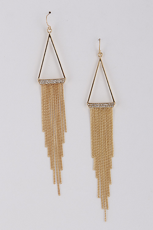 - * Triangle Rhinestone Fringe Drop Earrings 6ACC9 * 0.8 X 5" approx.