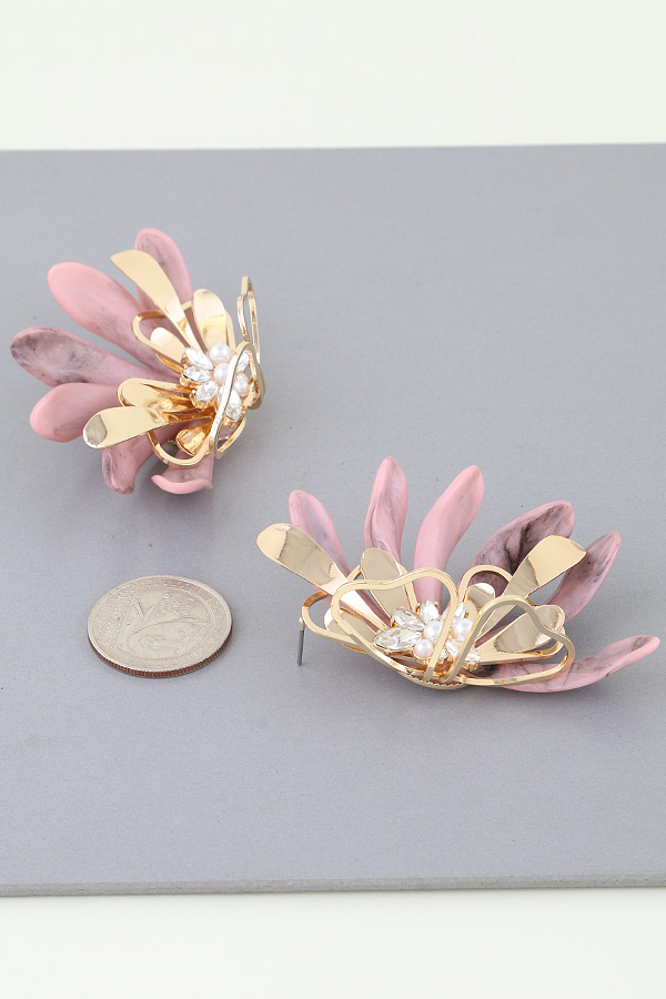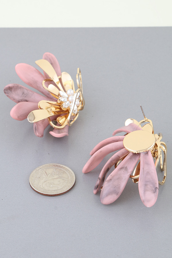 • * These Half Marble Flower Earrings from H&D Accessories feature a unique and artistic design. They are crafted in the shape of flowers, with a combination of smooth, marble - like elements and shiny metallic petals, centered around a cluster of sparkling stones, creating an eye - catching and elegant look.