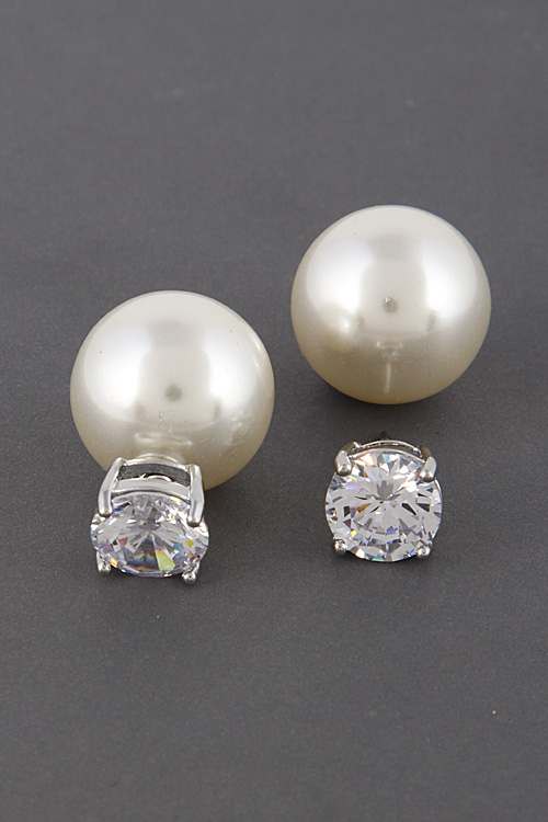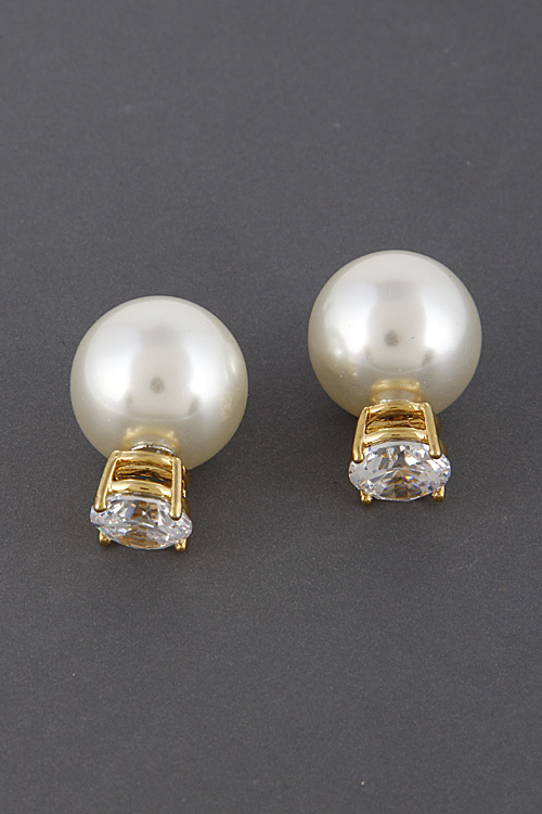 - * Faux Pearl With Rhinestone Earrings 6EBD9 * 0.8 X 1" approx.