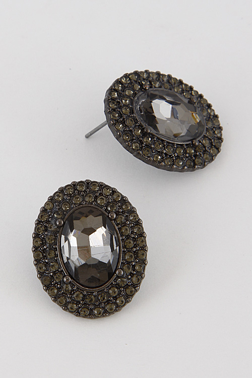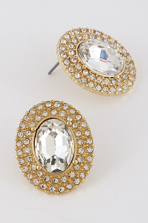 - * Oval Rhinestone Trendy Earrings 6LAE9 * 0.8 x 1" approx.