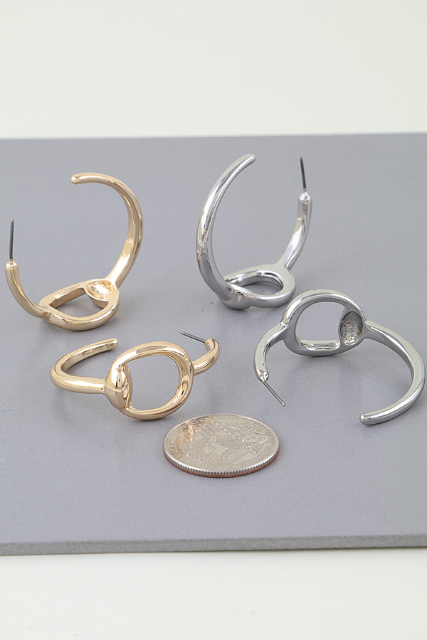 - * This is a pair of Modern Loop Hoop Earrings from H&D Accessories. They feature a unique design with an interlocking loop structure, creating a sleek and contemporary look. The earrings are perfect for adding a touch of modern charm to your outfit, whether you’re heading to a creative workshop, a casual night out with friends, or a city street - style event. They hang elegantly from the ears, effortlessly enhancing both everyday and dressy ensembles with their distinctive and trendy appeal.