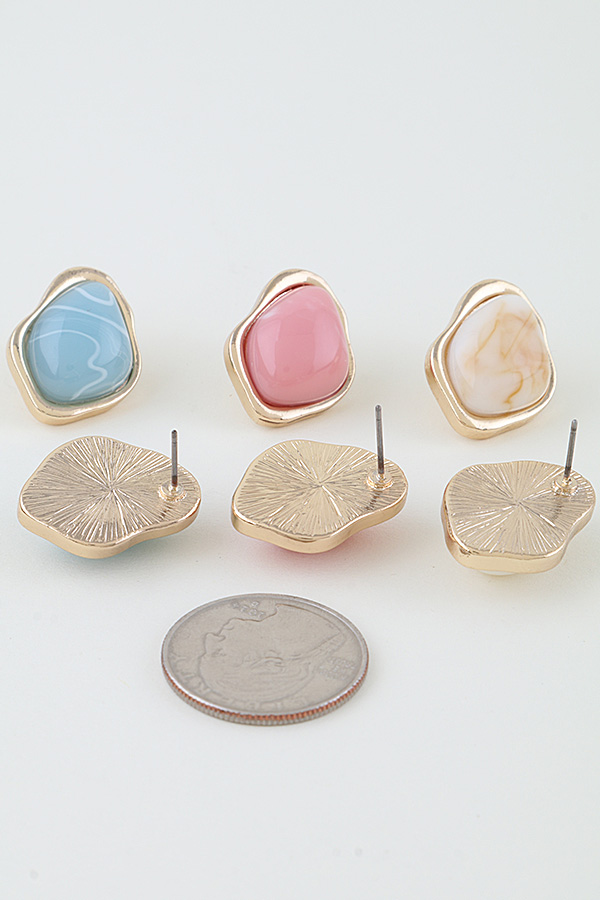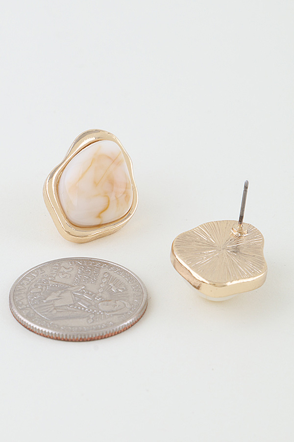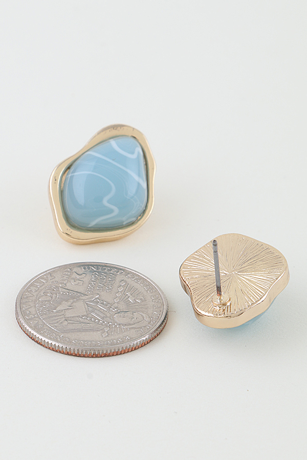- * This Ripple Effect Stone Stud Earrings from H&D Accessories feature irregularly shaped stones with subtle swirled patterns, framed by a delicate metallic border that adds a polished finish. The stud design offers a comfortable, low-profile fit while bringing soft visual interest to any look. They’re ideal for adding a gentle touch to daily outfits—perfect for pairing with a linen top during a weekend market visit, or for complementing a light blouse in a work setting, blending understated charm with versatile style that suits both relaxed and casual professional occasions.