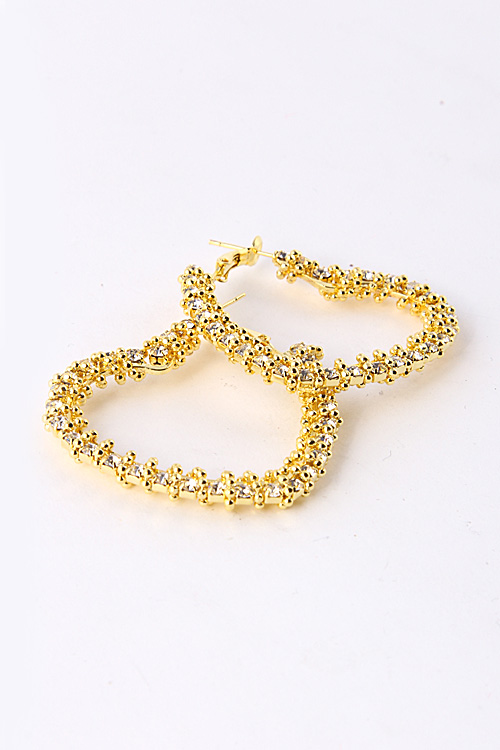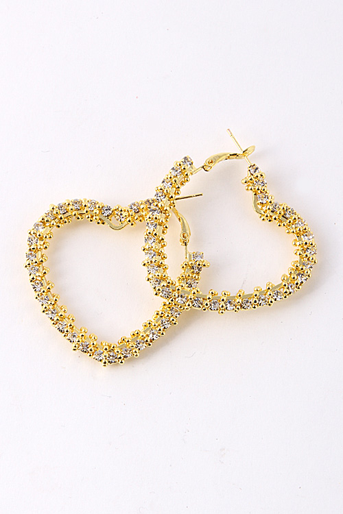 - * Smaller Rhinestone Studded Heart Hoop Earring 5ABG10 * 1.8 x 1.5" approx.