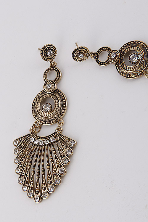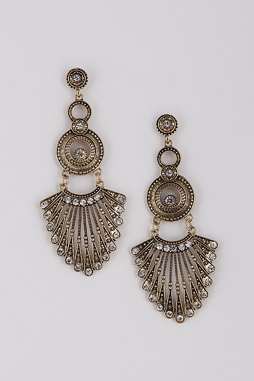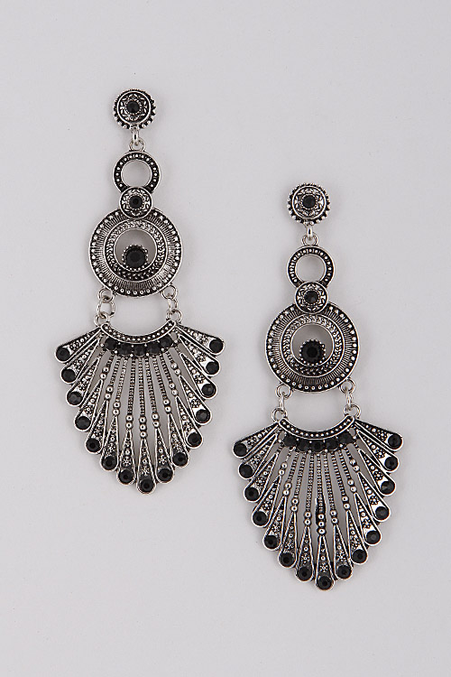 - * Roman Circle Rhinestone Earrings 6ACC8 * 1.5 X 3.5" approx.