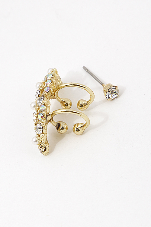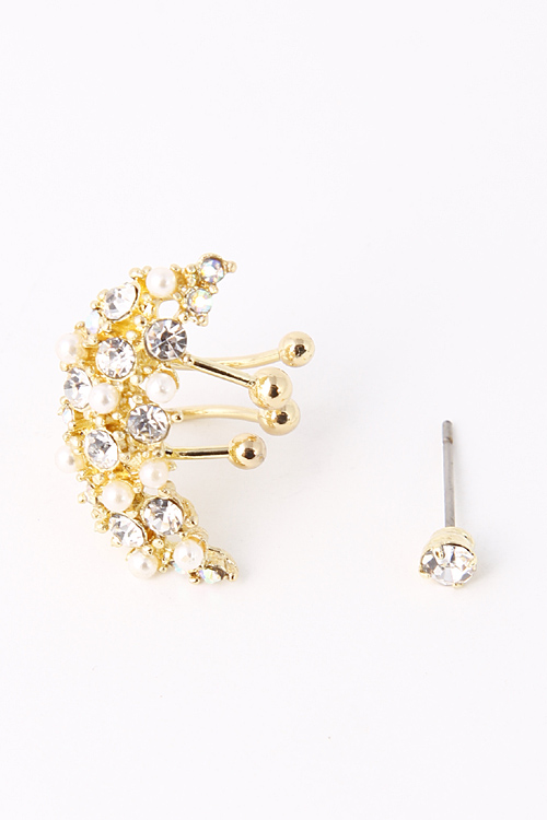 - * Pearl Rhinestone Studded Ear Cuff Earring 5ECI6 * .3 x .9/ .15 x .15" approx.