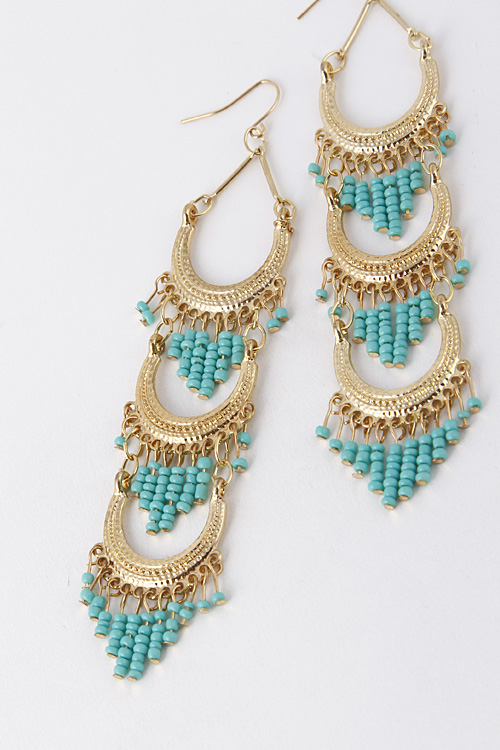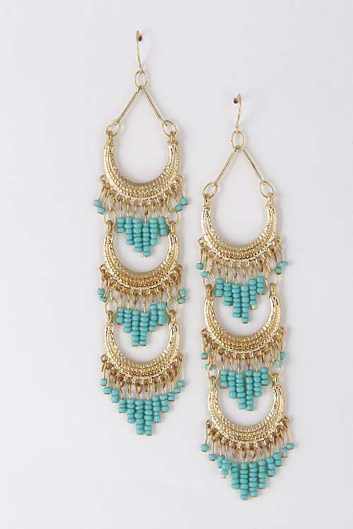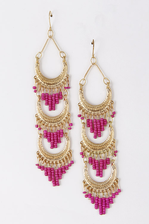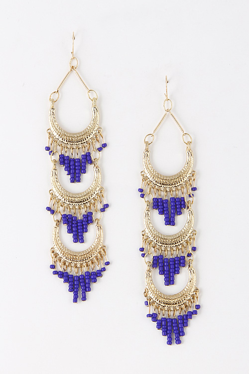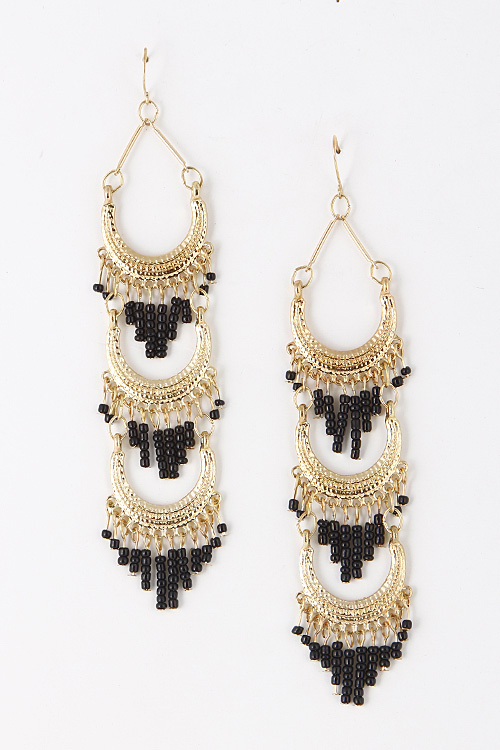 - * Curved Plate Beaded Triple Layered Earring 5FCC4 * 1 x 4" approx.