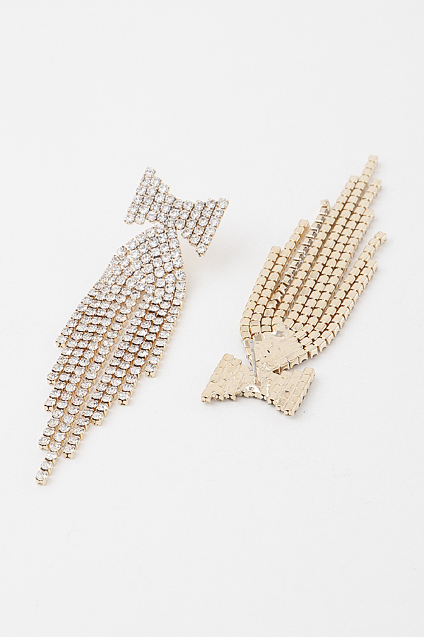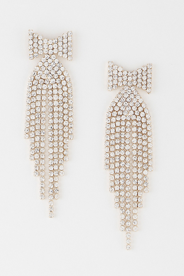 - * Jeweled Bow Tie Curtain Drop Earrings