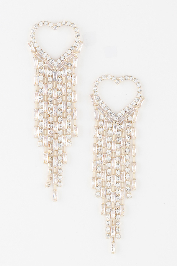 - * Rhinestone Heart Drop Earrings
