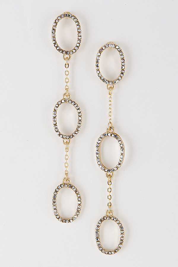 - * Three Small Oval Rhinestone Drop Earrings 8CCD5