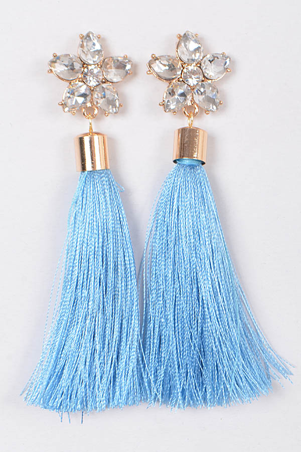 • * Flower Faux Rhinestone & Tassel Earrings