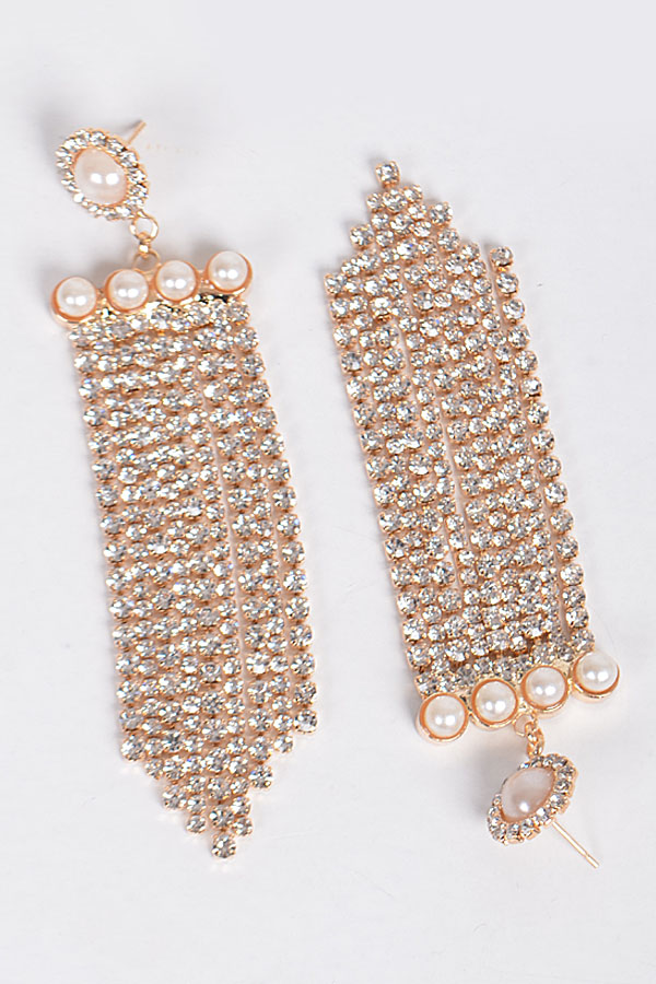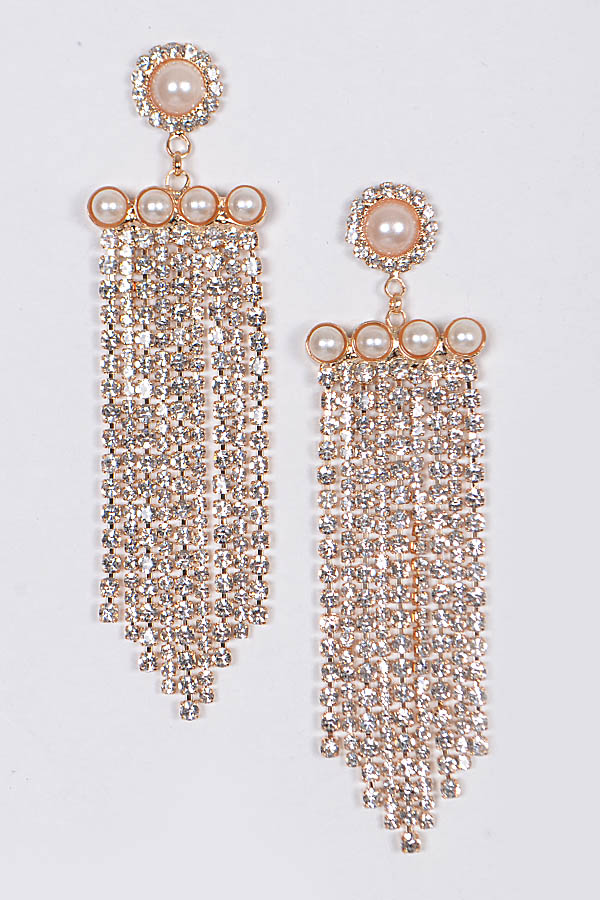 - * Fringed Lovely Rhinestone Earrings