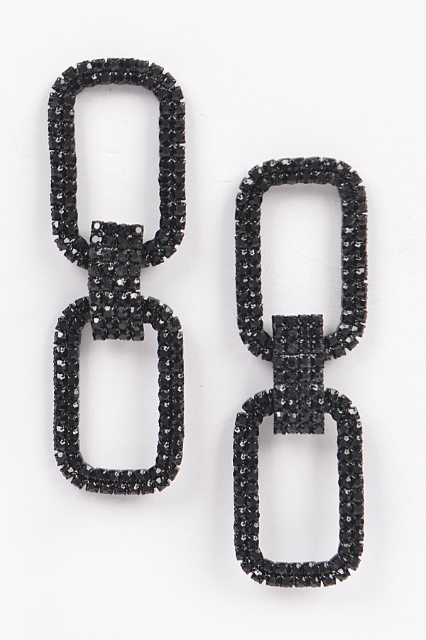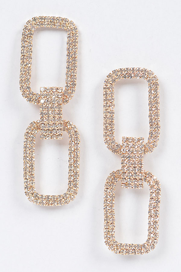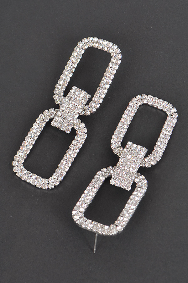 - * Two Rectangle Shape Rhinestone Earrings