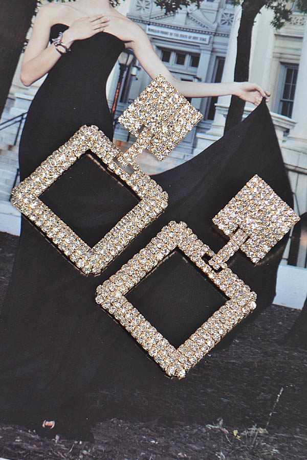 • * Square Rhinestone Earrings