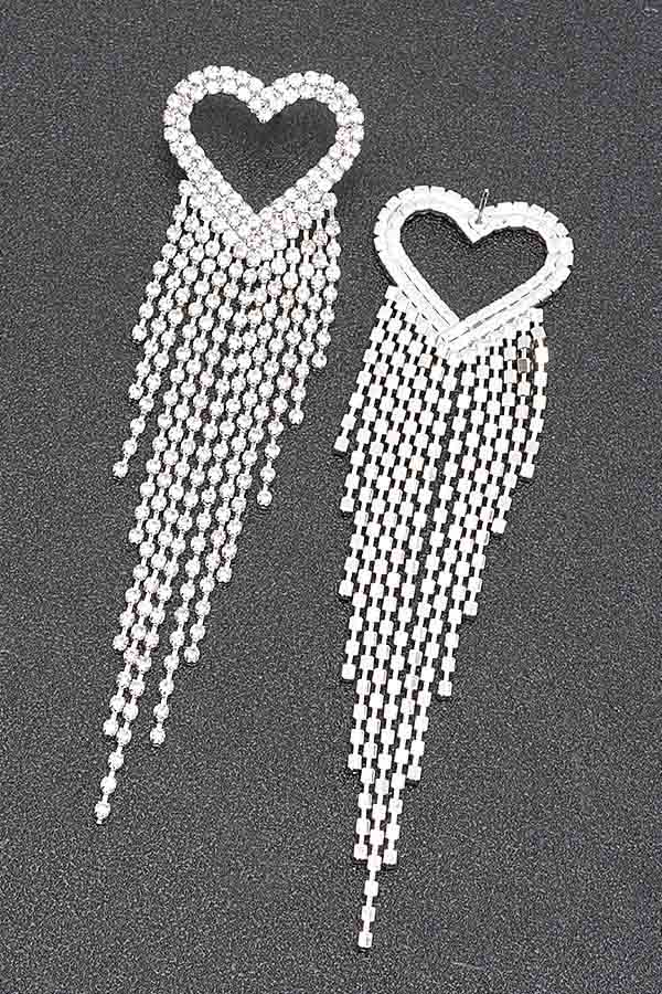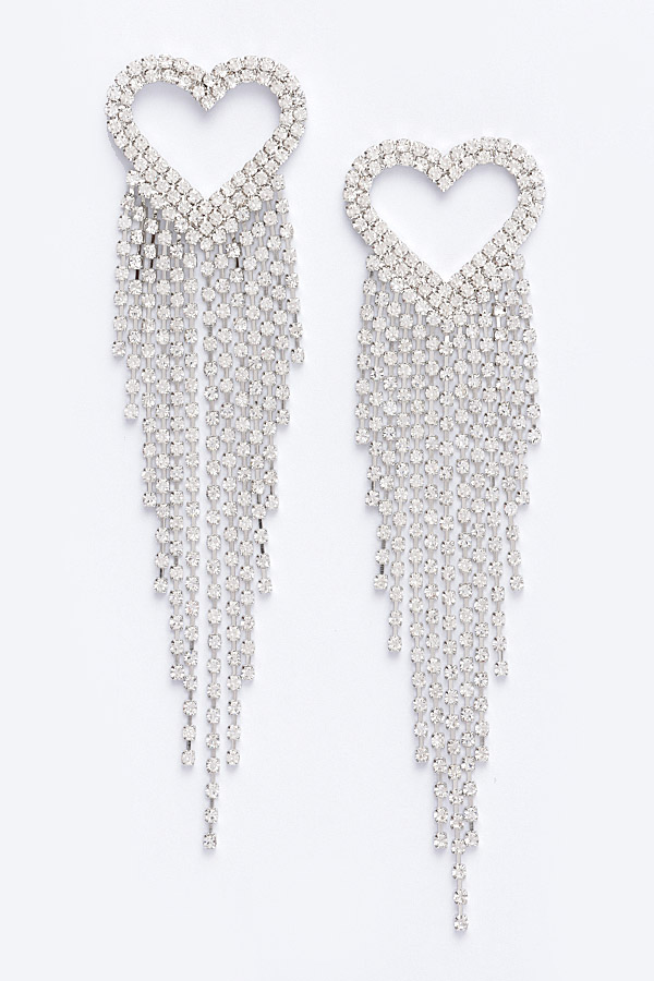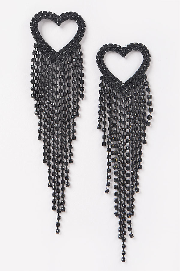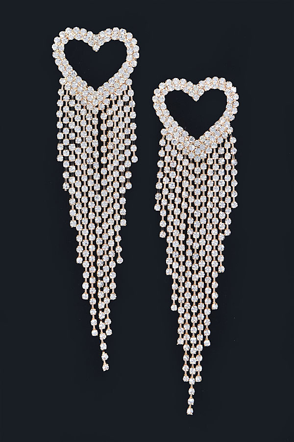 - * Introducing the "Rhinestone Heart Cascade Earrings" – a stunning blend of elegance and charm. These heart-shaped earrings, adorned with shimmering rhinestones and delicate chains, are designed to make a statement. Perfect for any occasion, they will elevate your style and add a touch of romance to your look.