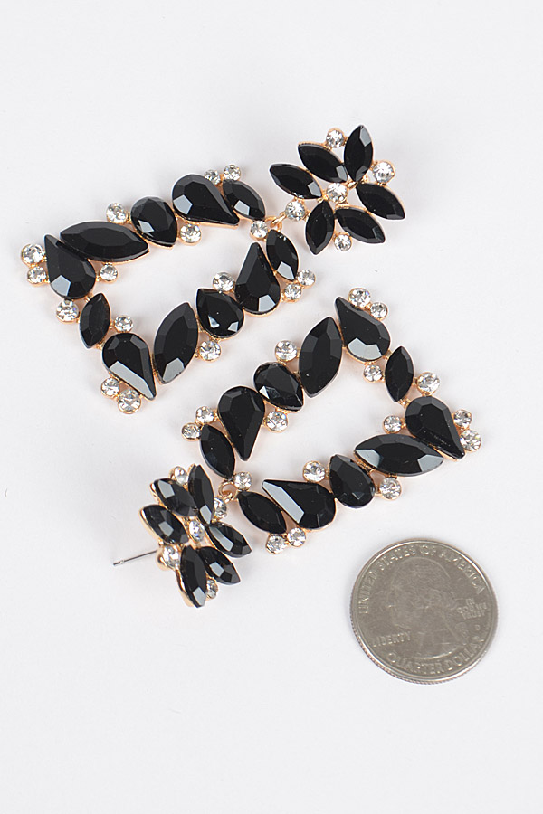 - * Flower Trapezoid Dangle Rhinestone Earring