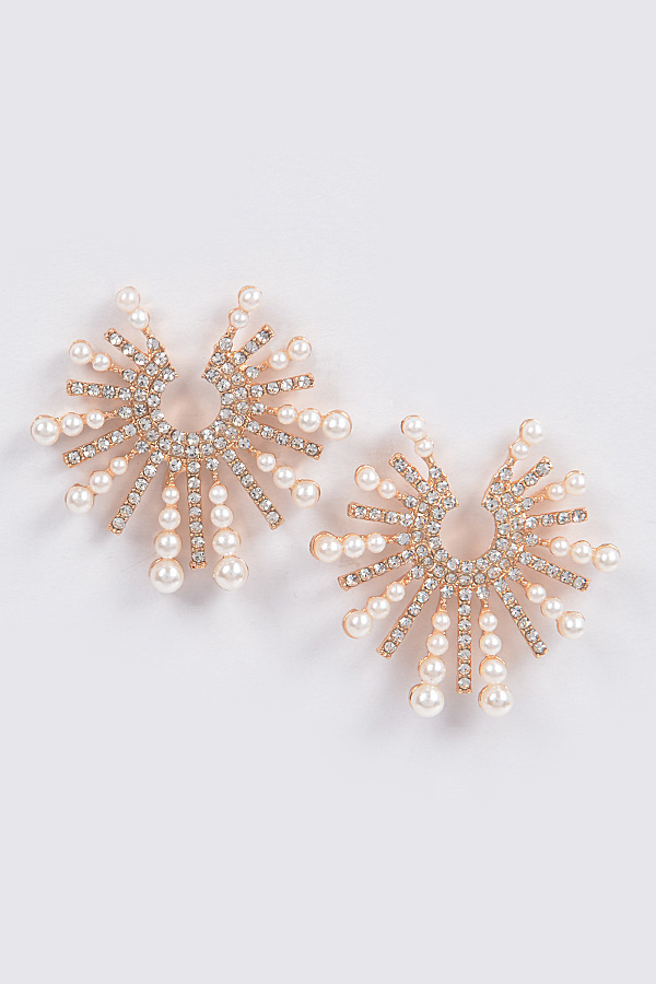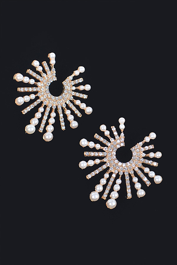 - * Rhinestone Faux Pearl Fan Circle Earrings