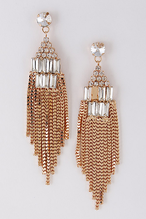 - * Chain Tassel & Rhinestone Earrings 7GBD8