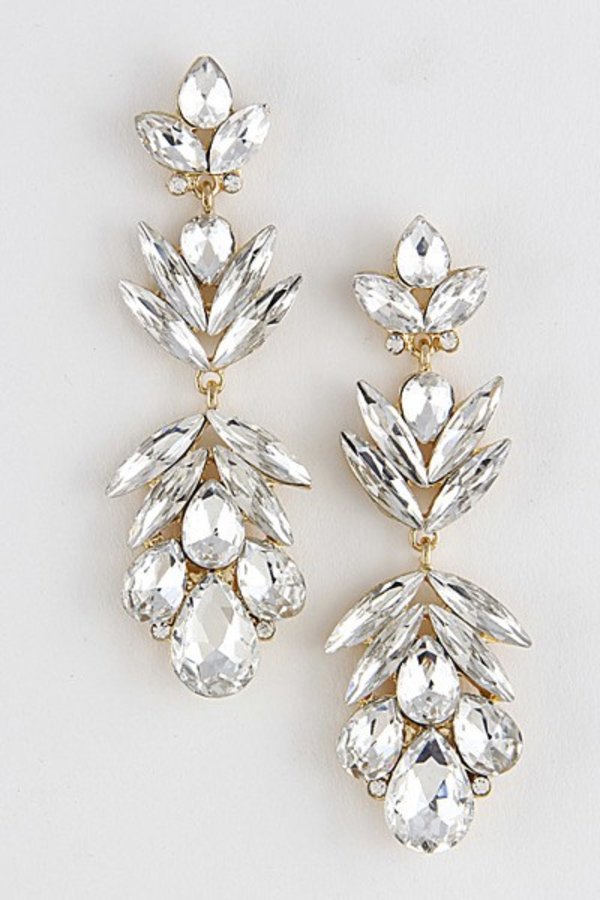 • * Elegant Shiny Long Earrings with Rhinestones Details 8LAB7