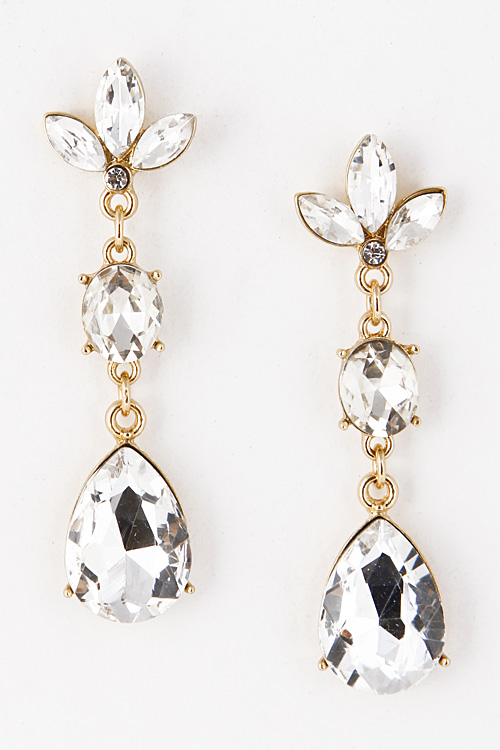 - * Three Clear Rhinestone Piece Dangle Earring 5CCG4 * .6 x 2.2" approx.