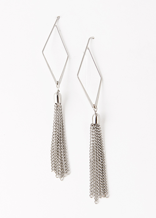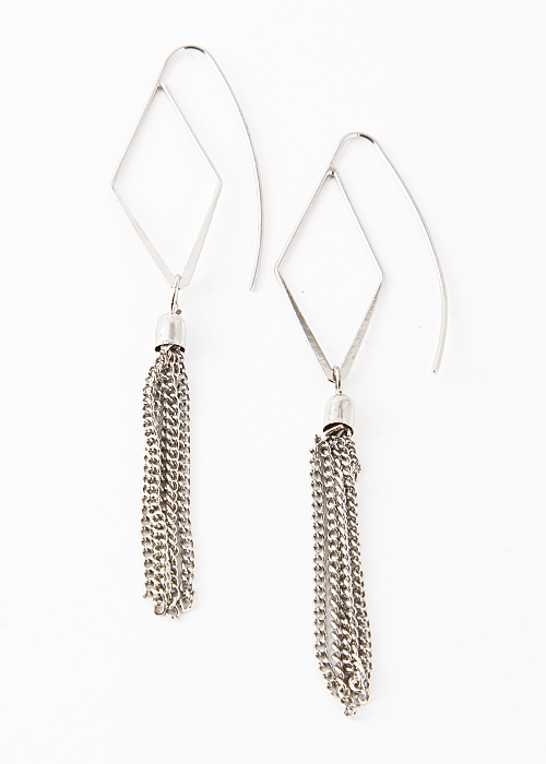 - * Diamond Cutout Chain Tassel Dangle Earring 5FAJ1 * .75 x 3" approx.