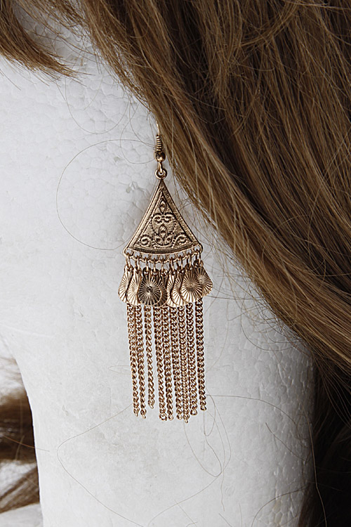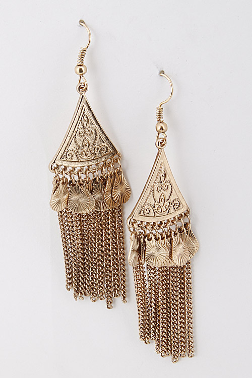- * Triangle Fringed Tassel Earrings 5JBC3 * 3" approx.