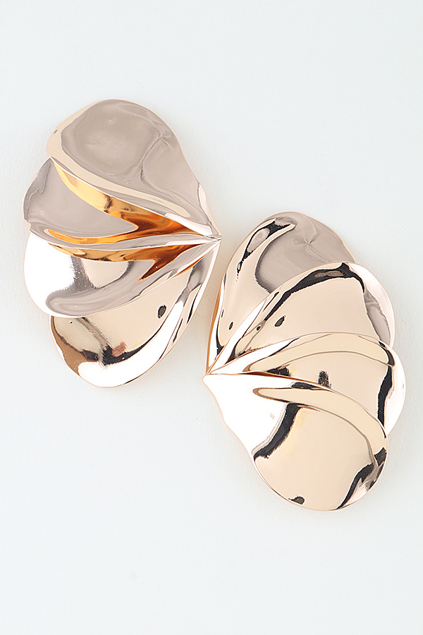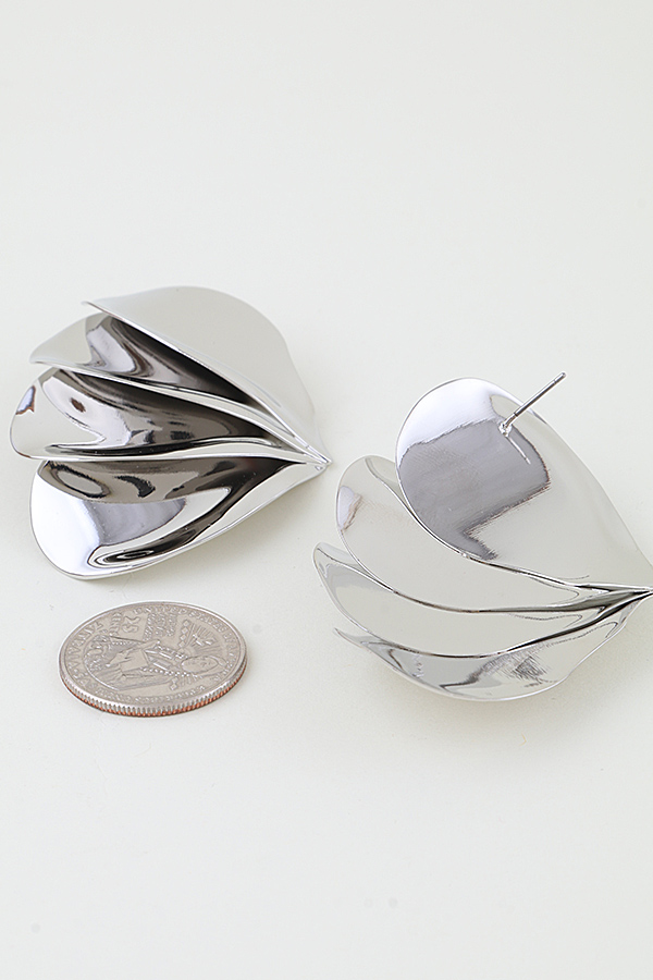 - * These Polished Multi Layer Stud Earrings from H&D Accessories feature a bold, sculptural design with overlapping, curved metal plates that create a dynamic, three-dimensional effect. Their modern, organic silhouette is perfect for making a statement at evening events or adding a sophisticated edge to casual daytime looks. Crafted with meticulous detail, they offer both striking visual appeal and versatile wearability for any occasion.