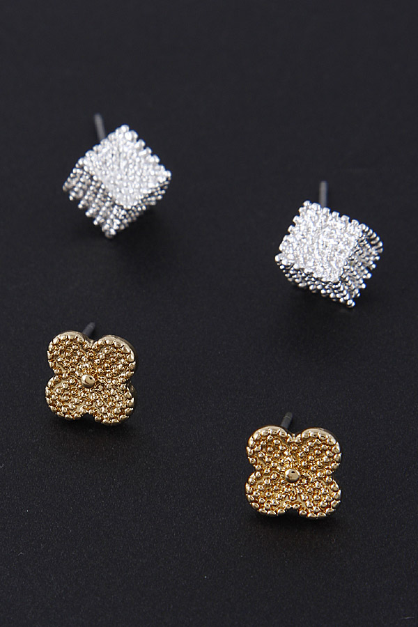 - * Flower & Square Set Earrings 8DBB2