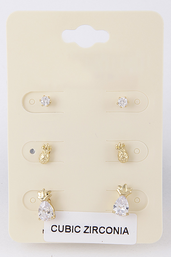 - * Pineapple & Circle Stud Earring Set 8JBB4