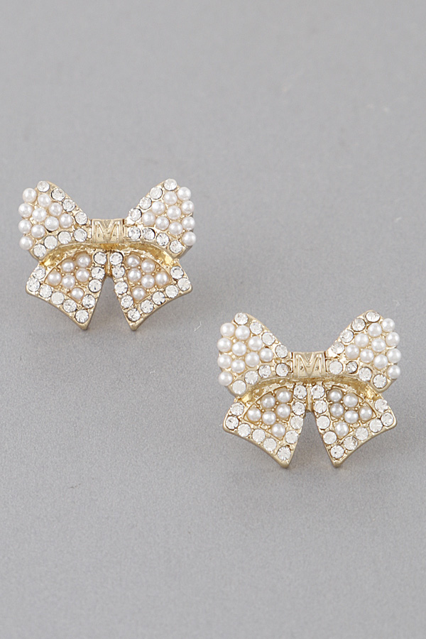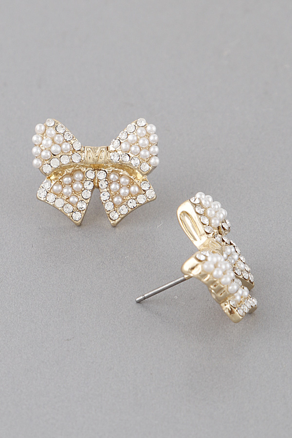 - * Pearl Studded Ribbon Earrings