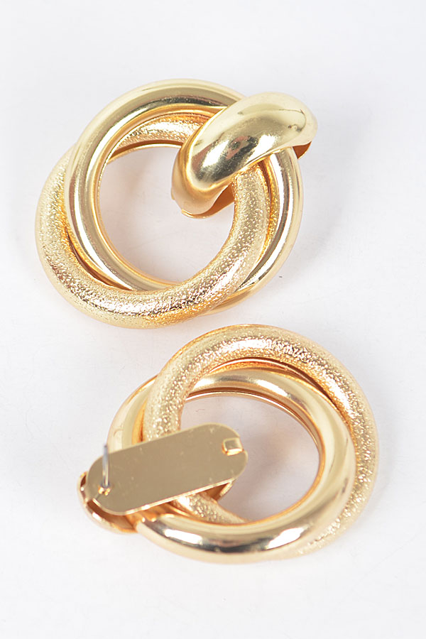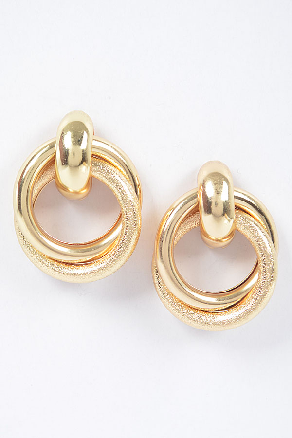 - * This Metal Stud Earring from H&D Accessories features an interlocking ring design with a combination of smooth and textured finishes. It has a sophisticated and stylish appearance, giving off an elegant and modern vibe.Ideal for complementing evening wear or business attire at events like galas, meetings, or award ceremonies, adding a touch of refinement.