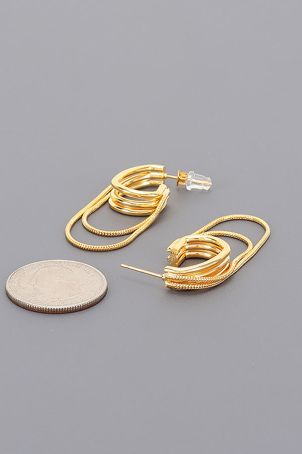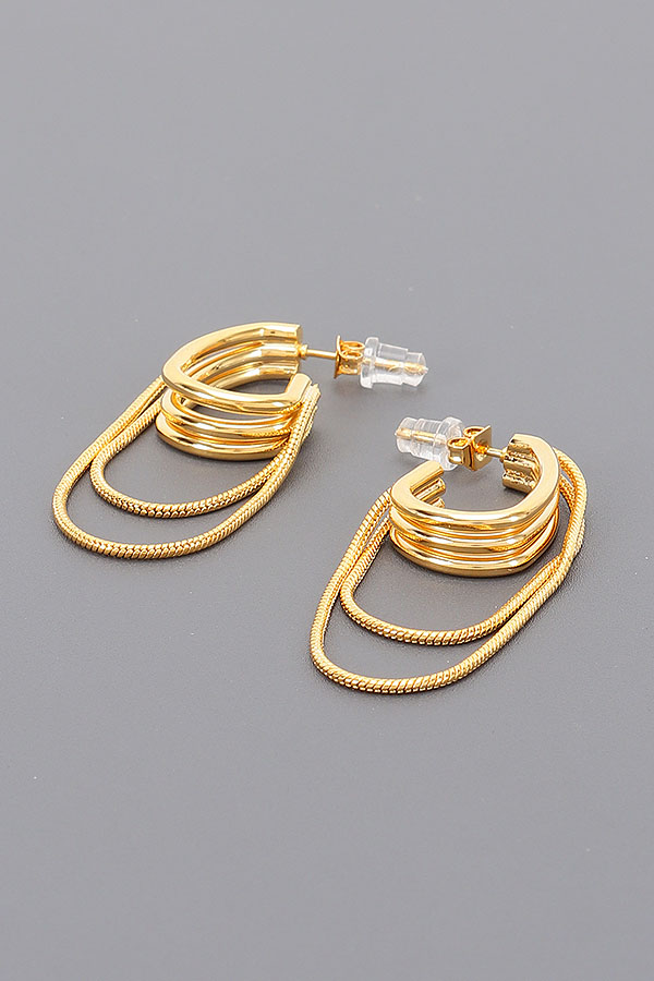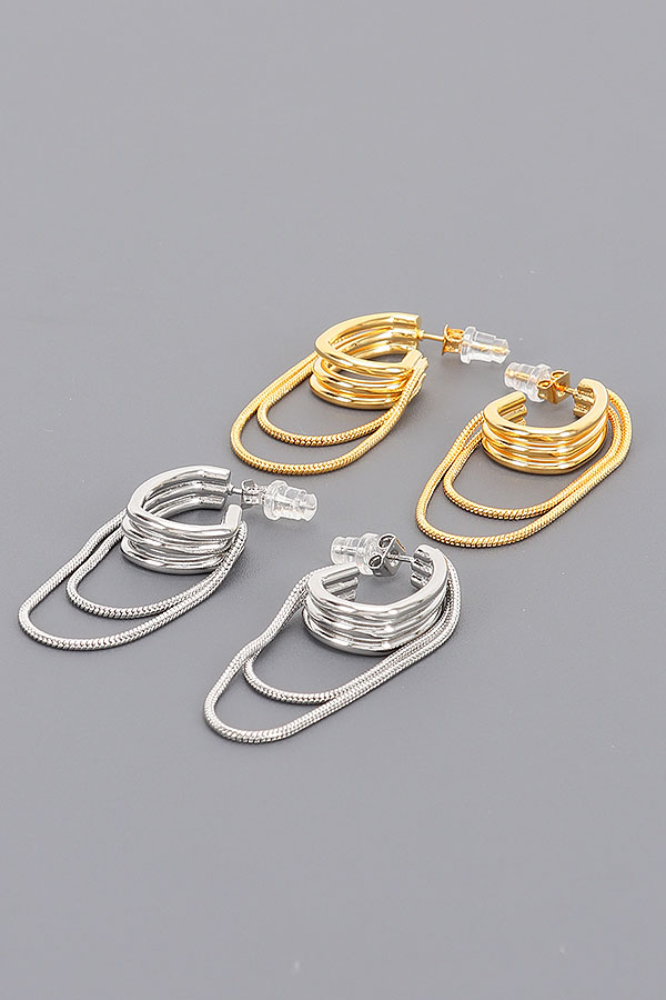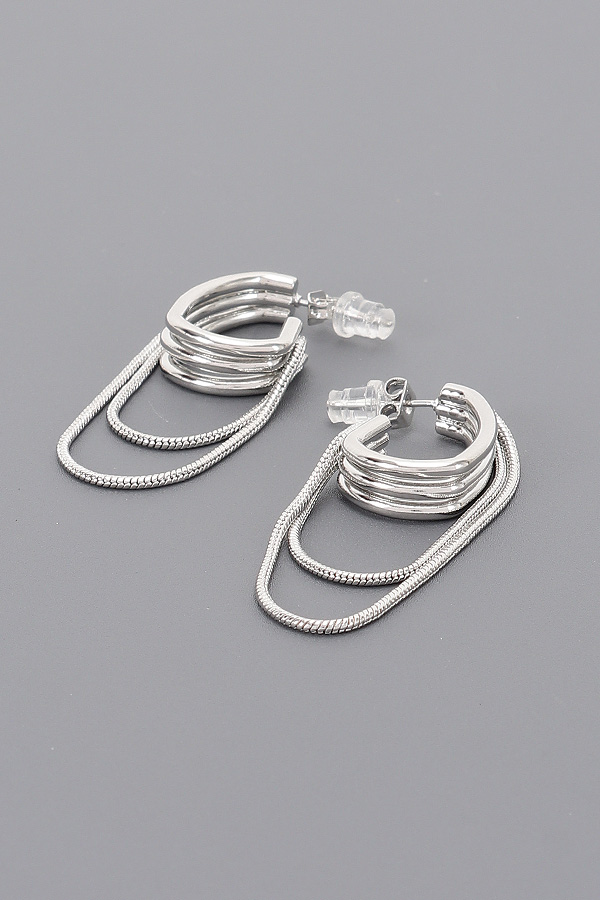 - * These are Metal Vintage Earrings from H&D Accessories. They feature a multi - layered design, with a thick, curved metal component at the top and dangling, slender metal chains. The metal has a polished finish, creating a sleek and retro look. The earrings are secured with clear earring backs for comfortable wear. Ideal for adding a touch of vintage charm to outfits, they suit occasions like retro - themed parties, art gallery visits, or pairing with classic - style dresses and blouses for a stylish, nostalgic ensemble.