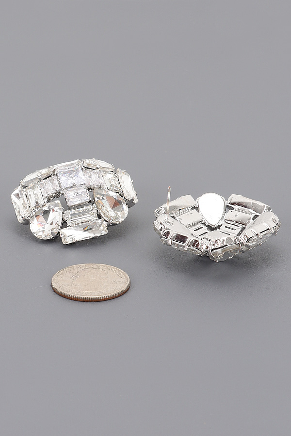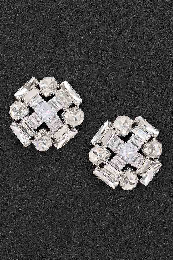 - * These are Multi Stone Earrings from H&D Accessories. They present a geometric, symmetrical design. Multiple rhinestones of different cuts are meticulously arranged, with some rhinestones set in a criss - cross pattern at the center, surrounded by other rhinestones to form a rounded, clustered shape. The rhinestones are held together by a metal framework, creating an intricate and eye - catching structure that showcases the combination of various rhinestones forms and the craftsmanship of the setting.