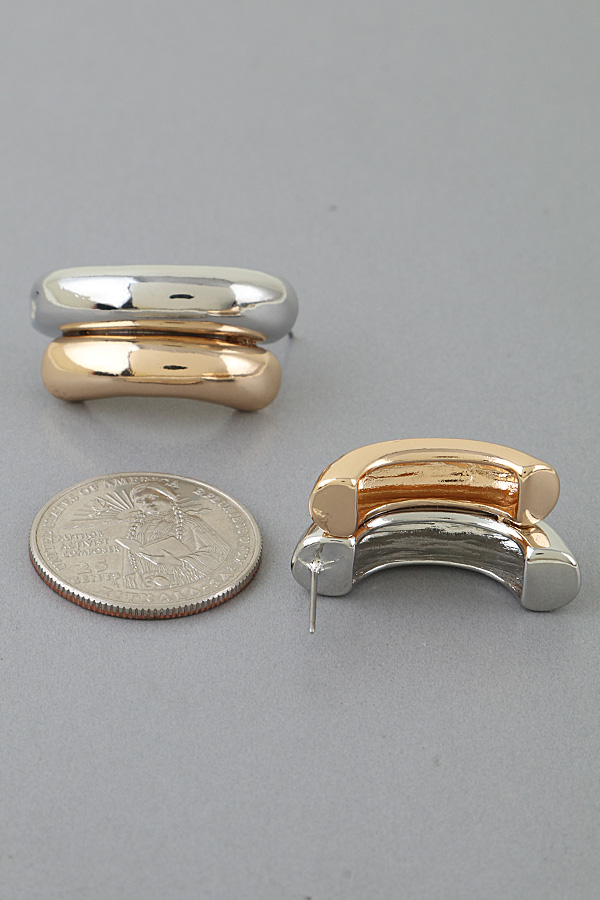 - * This is the Two Toned Double Hoop Earrings from H&D Accessories, featuring sleek, curved double hoops in mixed polished finishes for a modern, minimalist look. Their versatile design makes them ideal for daily scenarios—whether you’re heading to the office, grabbing coffee with friends, or attending a casual evening event—effortlessly complementing blouses, sweaters, or simple tops to add a subtle, refined touch. Lightweight and stylish, these earrings balance clean double-hoop silhouettes with dynamic tonal contrast, making them a go-to accessory for anyone who favors contemporary, polished pieces.