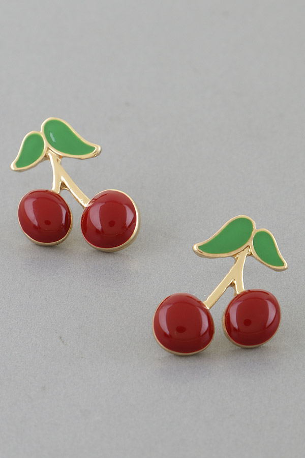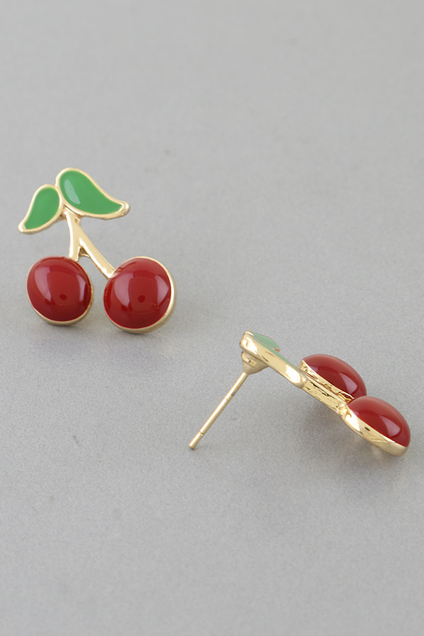 • * These Cute Cherry Stud Earrings from H&D Accessories are a charming accessory. Each earring features a pair of cherry motifs with a glossy red finish, symbolizing freshness and playfulness. A green leaf detail is added to the cherry stems, enhancing the realistic and cute aesthetic. The golden - toned metal setting provides a touch of elegance, making these earrings a delightful choice for those who love sweet - themed jewelry.