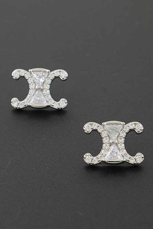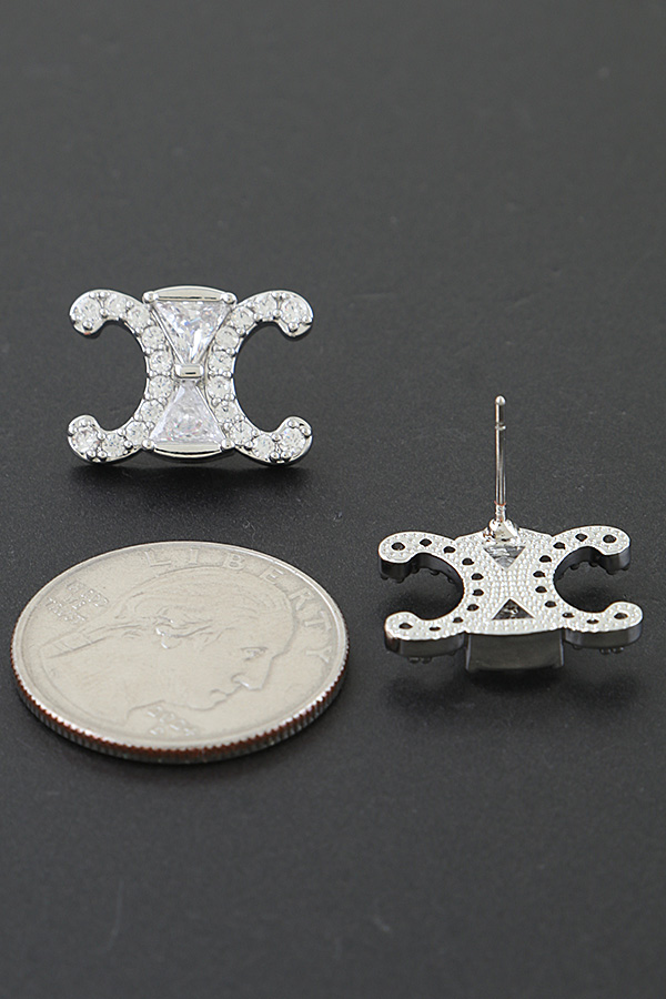 - * Silver Bejeweled Hourglass Stud Earrings