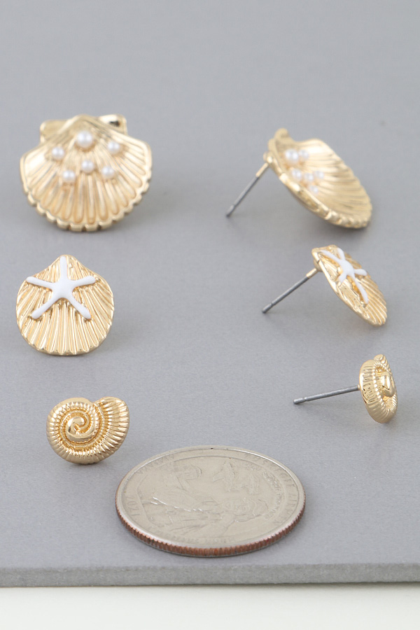- * Introducing the "Golden Seashell Elegance Set" from H&D Accessories. This exquisite collection features four stunning gold-plated earrings inspired by the beauty of the ocean, complemented by a unique coin that adds a touch of sophistication. Elevate your accessory game with this perfect blend of nature and luxury.