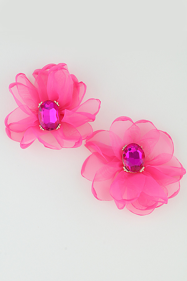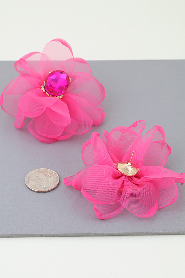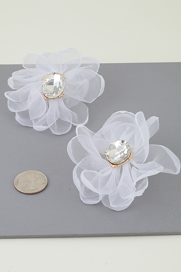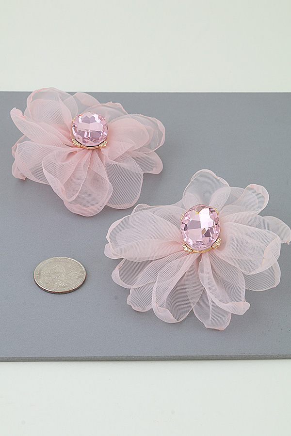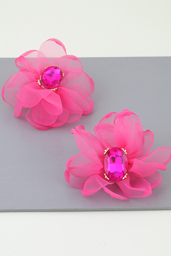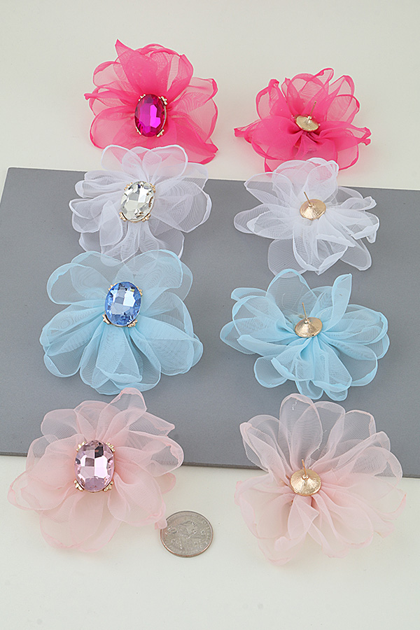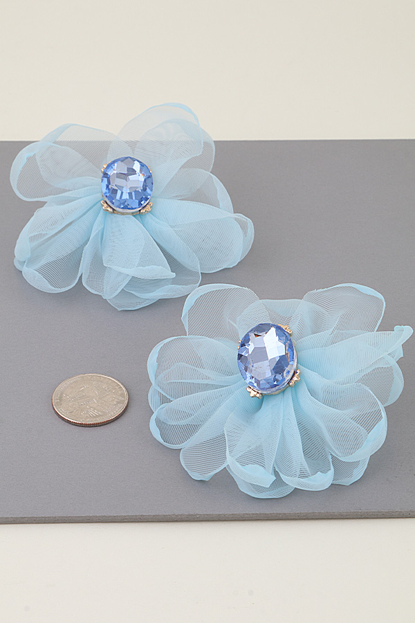 - * These Crystal Mother's Day Flower Stud Earrings from H&D Accessories feature a voluminous, layered fabric flower design centered with a large, faceted oval crystal that adds a brilliant, eye-catching sparkle, creating a soft, feminine, dimensional silhouette perfect for gifting or wearing, ideal for spring celebrations, Mother's Day gatherings, brunch dates, or romantic daytime outings.