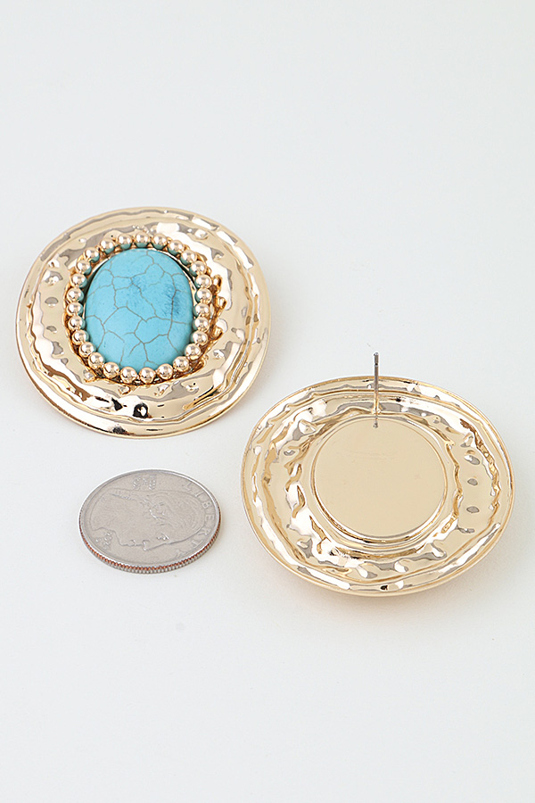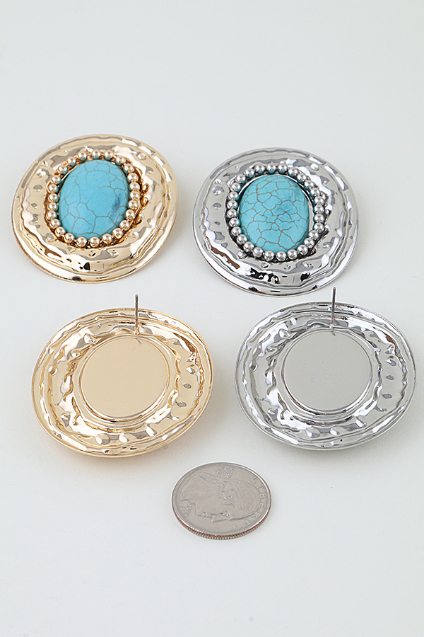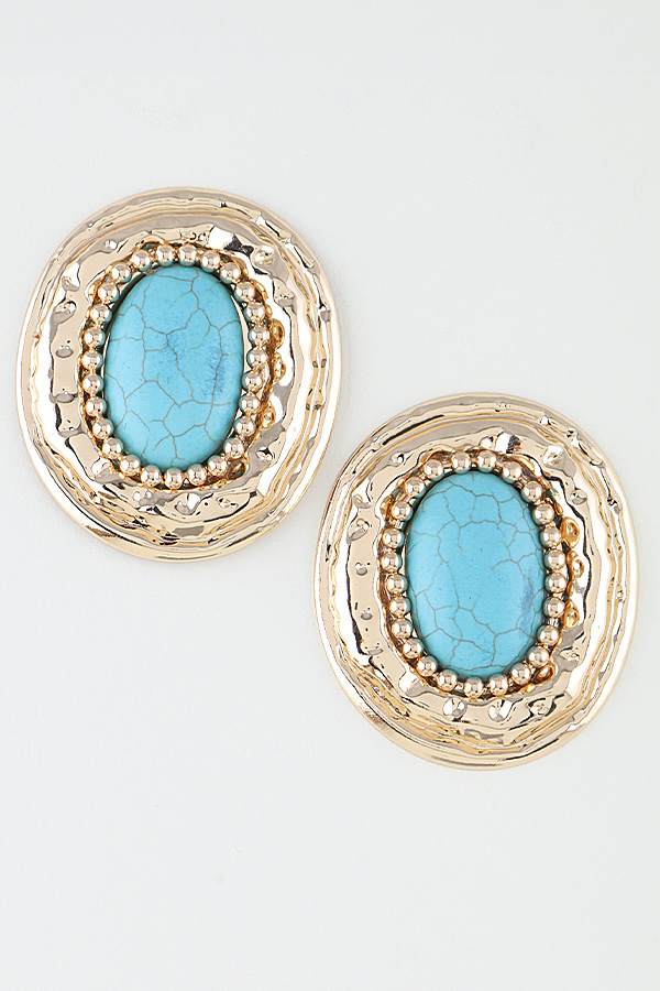 - * These Hammered Beaded Crackle Oval Earrings from H&D Accessories showcase a uniquely textured frame with a gently uneven surface, paired with a beaded border that wraps around a detailed central stone. They work beautifully as a statement piece for both casual and semi-formal moments: slip them on with a relaxed top and jeans for a weekend brunch, or pair them with a tailored blouse to add a subtle, eye-catching touch to a workday ensemble. The oval shape and layered design bring a distinct, artisanal feel to any look, while their secure backing ensures comfortable wear from morning errands to evening get-togethers.