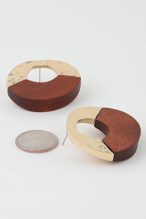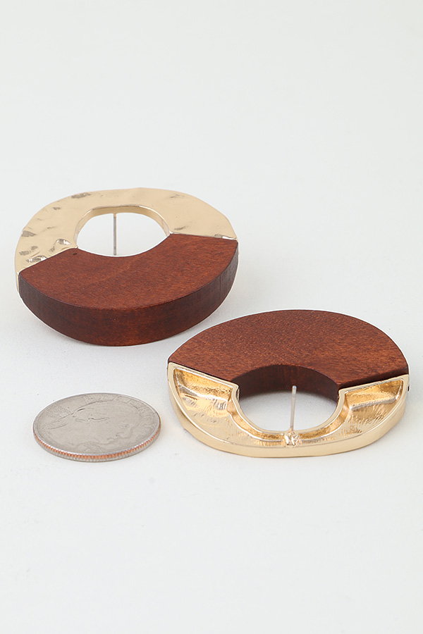 - * These Two Toned Modern Loop Earrings from H&D Accessories feature a distinctive circular design, combining two different materials. One part showcases a textured metal finish with an artistic, patterned surface, while the other part has a natural, smooth texture. The two-toned combination creates a modern and stylish contrast, with meticulous craftsmanship evident in the seamless joining of the two materials. These earrings embody a perfect blend of contemporary design and artistic detail, making them a standout piece for those who appreciate unique and trendy jewelry.