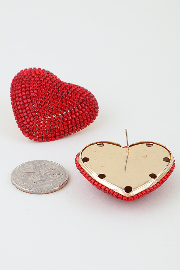 - * These Cubic Bejeweled Heart Stud Earrings from H&D Accessories feature a charming heart shape, fully adorned with countless sparkling cubic stones. The meticulous arrangement of the stones creates a rich, textured look that catches the light beautifully from every angle. With their eye-catching design and exquisite craftsmanship, these stud earrings offer a perfect blend of sweetness and glamour, making them a standout piece to add a touch of chic style to your jewelry collection.