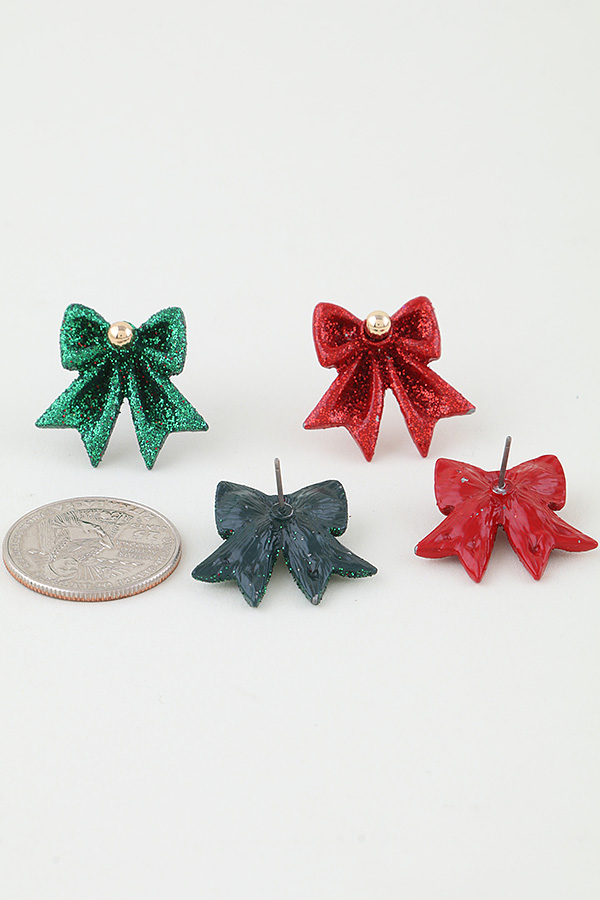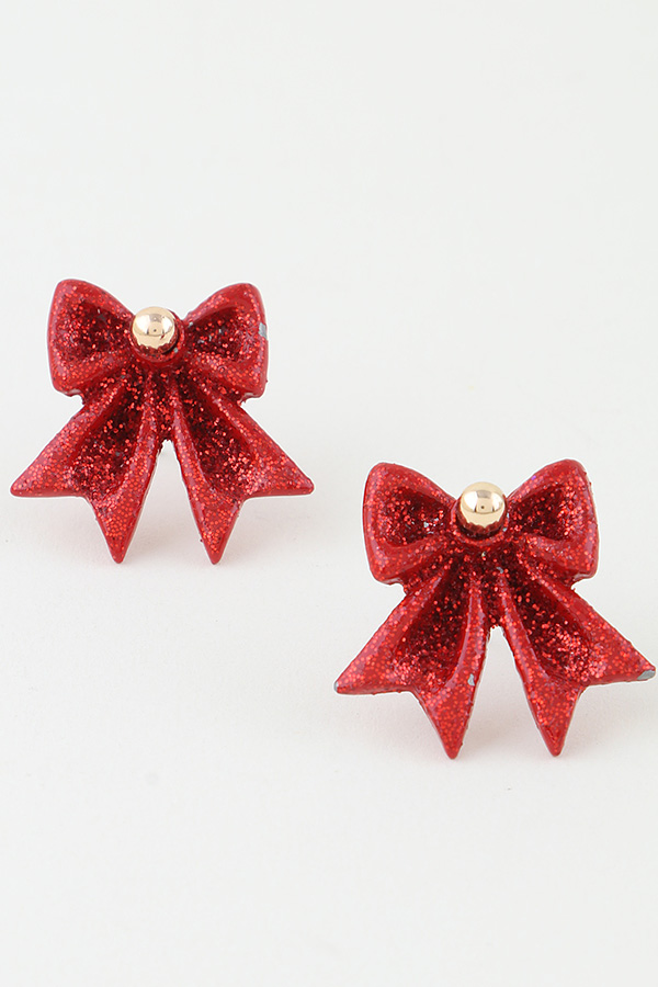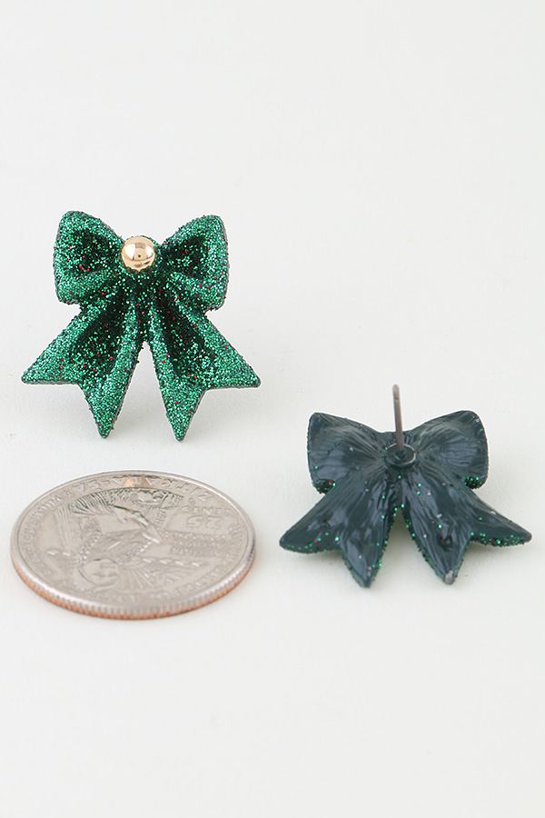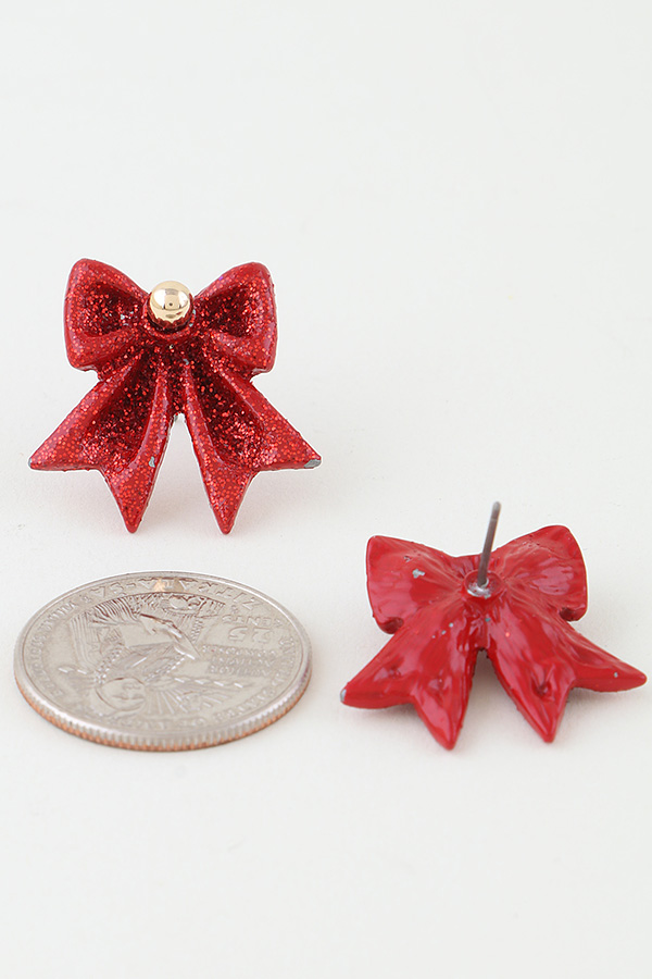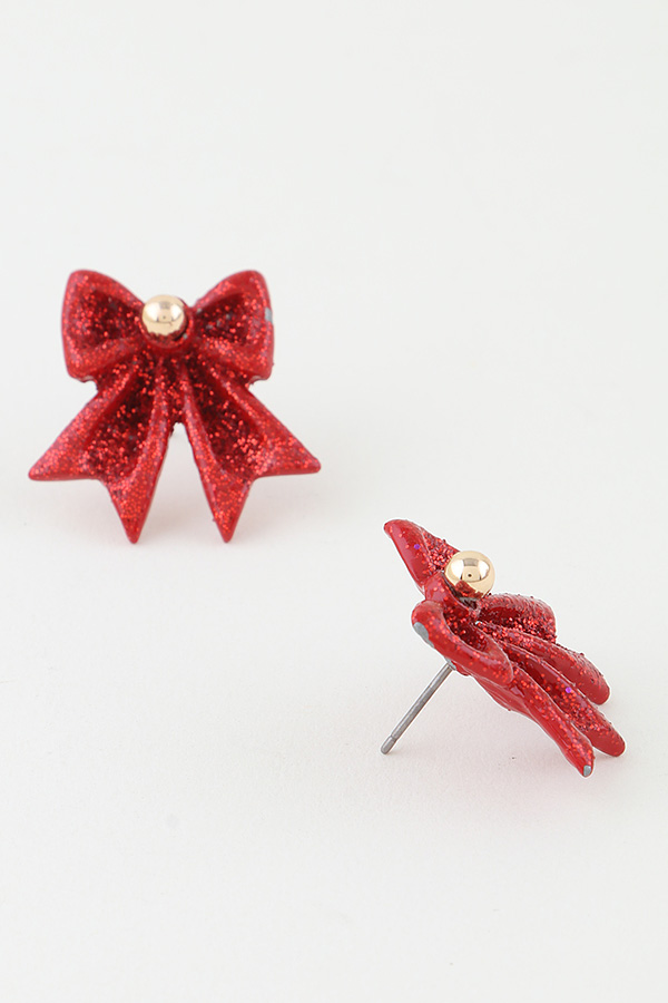 - * These are Glitter Ribbon Stud Earrings from H&D Accessories. They feature a charming ribbon design with glitter details, exuding a playful and festive charm. You can wear them to a Christmas party with a cute sweater dress or to a Valentine's Day date with a romantic lace outfit, adding a sweet and eye-catching touch to your look in various celebratory occasions.
