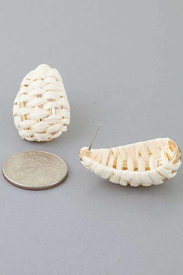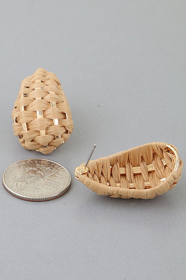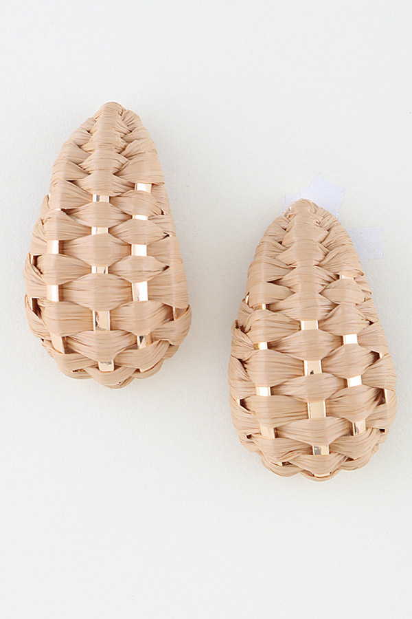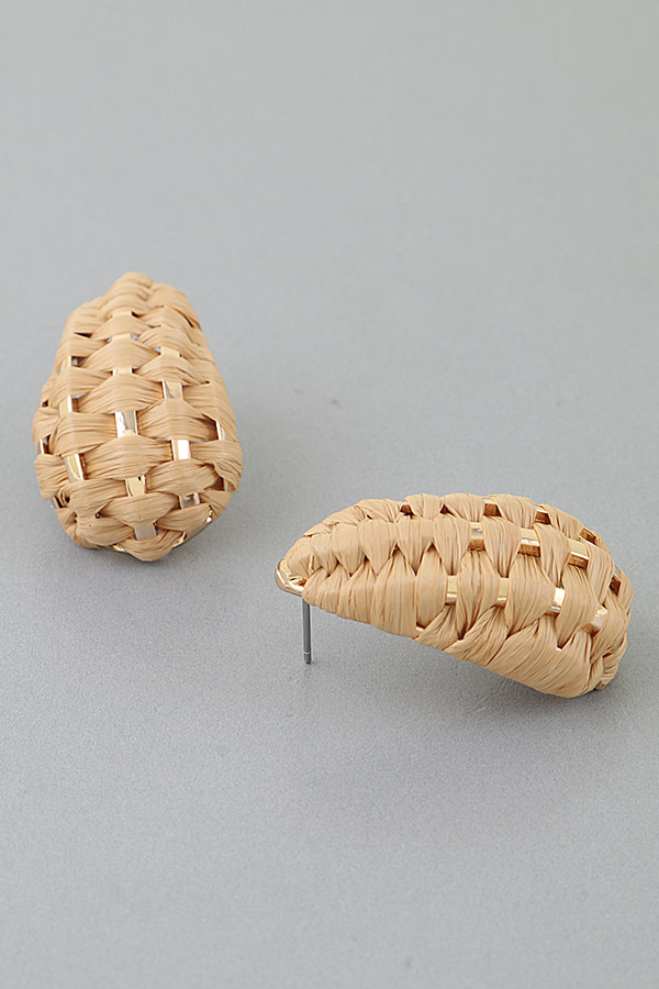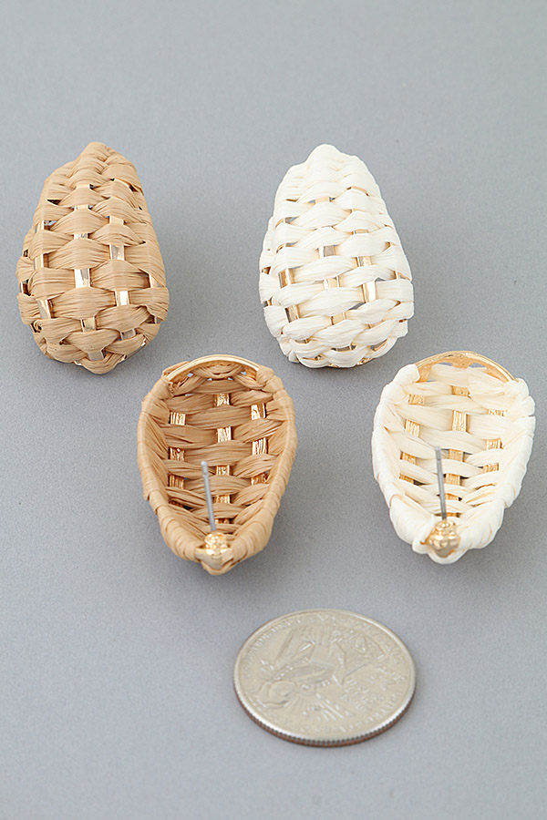 - * Basket Weaved Teardrop Earrings from H&D Accessories: These feature a textured, handcrafted basket-weave pattern shaped into a sleek teardrop silhouette. The intricate woven design is accented with subtle metallic details, adding depth to the structured yet lightweight form. Secured with a reliable stud backing, they blend artisanal charm with modern versatility—ideal for bringing a tactile, organic touch to any ensemble. A unique piece that merges craft-inspired detailing with wearable elegance.