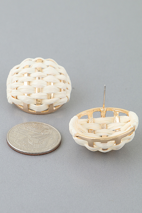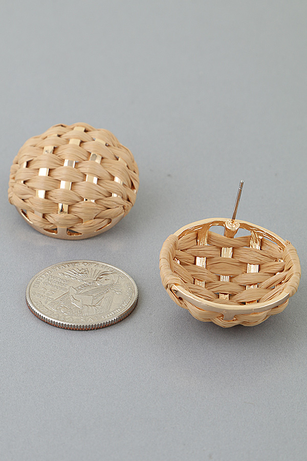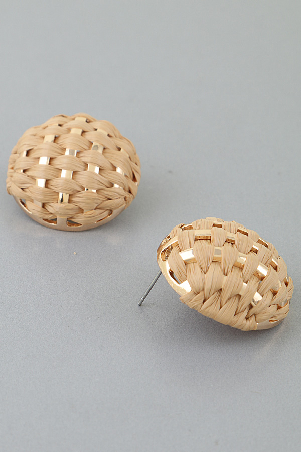 - * Basket Weaved Dome Earrings from H&D Accessories: These feature a rounded dome silhouette crafted with an intricate hand-woven basket pattern, accented by subtle metallic details that enhance texture. Designed with a secure stud backing, the lightweight, structured form balances artisanal charm with modern simplicity. The tactile weave adds organic depth, making them a distinctive piece that merges craft-inspired design with everyday wearability.