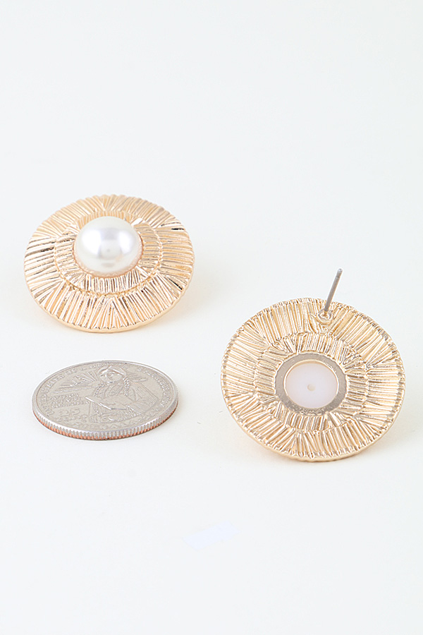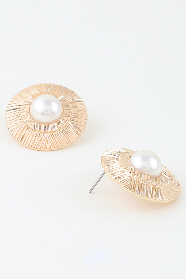 • * This Abstract Flare Pearl Disc Stud Earrings from H&D Accessories features a smooth, rounded pearl centered within a textured, flared disc frame with radiating details, blending classic elegance with modern, artistic texture. Its distinctive design makes it a versatile accessory: wear it to add a refined touch to a linen shirt for a weekend market visit, or pair it with a cocktail dress to bring a polished flair to a evening event. The combination of the lustrous pearl and the abstract flared frame allows it to transition seamlessly between casual daily looks and sophisticated social occasions, bringing a timeless yet contemporary charm to any ensemble.
