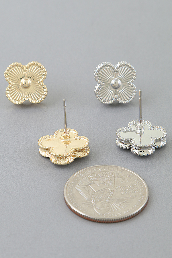 - * Classic Clover Cubic Zirconia Stud Earrings from H&D Accessories: These feature a delicate clover silhouette, with a textured, radiating-pattern surface and a centered spherical detail. Crafted with a secure stud backing, they’re compact and comfortable for all-day wear—perfect for complementing daily casual looks or adding a subtle charm to office attire. A timeless, dainty piece that blends intricate design with everyday versatility.