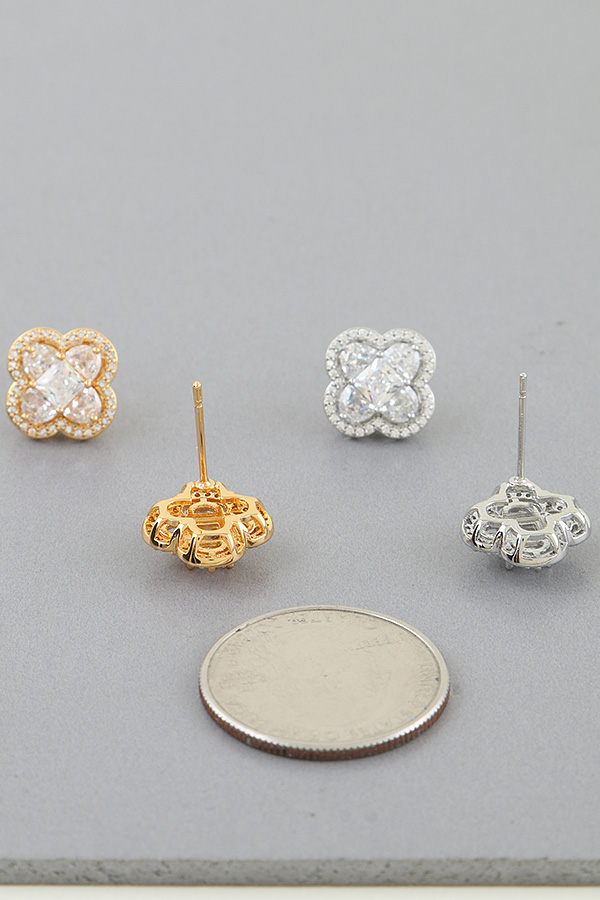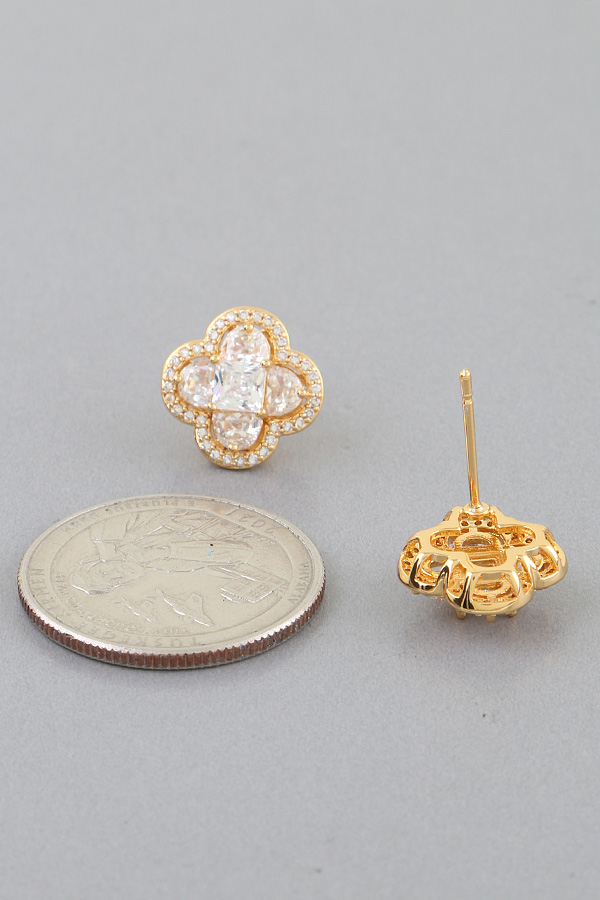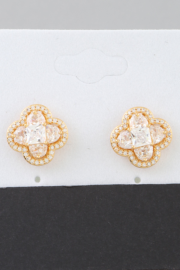 - * Bejeweled Cubic Zirconia Clover Stud Earrings