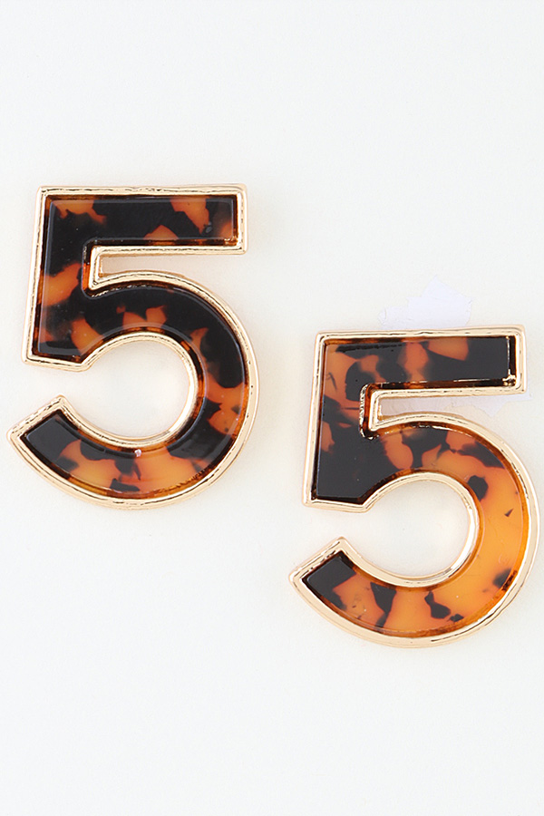 - * This is the Tortoise 55 Earrings from H&D Accessories, featuring bold number "5" silhouettes with a tortoise pattern and polished metallic edging for a playful, statement-making look. Their distinctive design is perfect for fun occasions—like birthday celebrations, casual parties, or themed outings—effortlessly pairing with graphic tees, dresses, or relaxed tops to add a quirky, stylish touch. Lightweight despite their bold shape, these earrings balance the warm texture of tortoise patterns with a eye-catching numeric design, making them a lively accessory for anyone who favors playful, unique pieces.