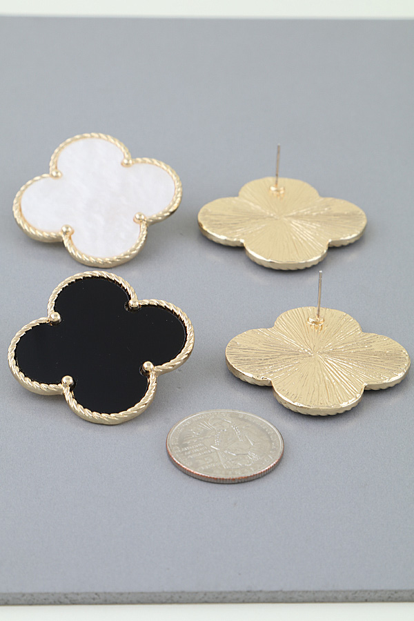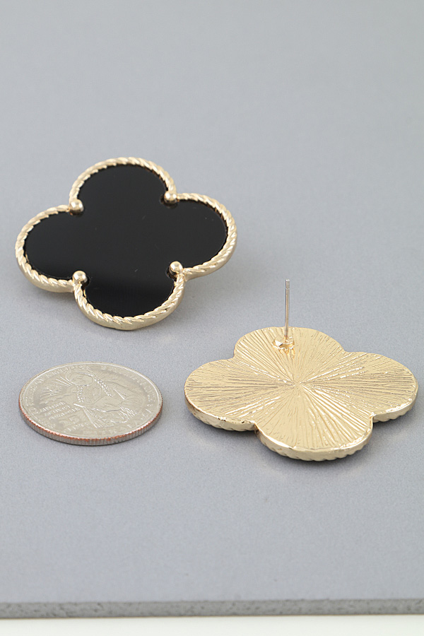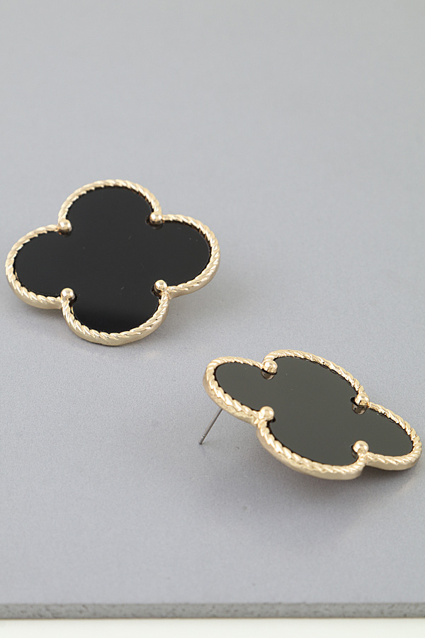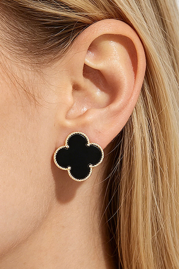 - * These Twisted Clover Stud Earrings from H&D Accessories showcase a timeless four-leaf clover silhouette, framed by a delicate twisted metallic border that adds texture to the smooth, glossy central panel. Ideal for everyday wear, office styling, or elegant daytime events, they bring a touch of refined luck and sophistication to any outfit. The contrast between the sleek inlay and the textured border creates a polished, eye-catching look, making them a versatile staple that elevates both casual and formal ensembles with understated luxury.