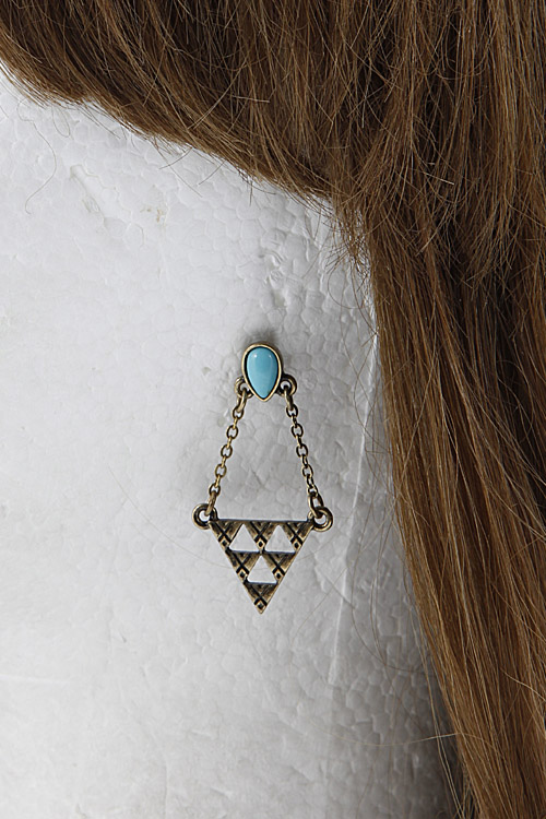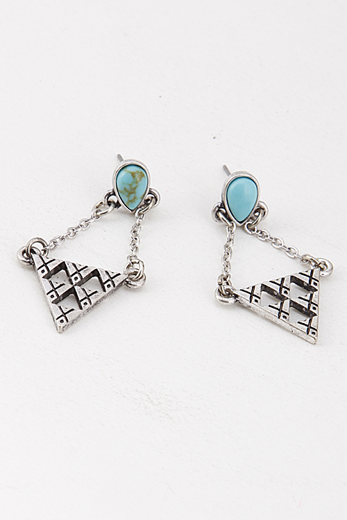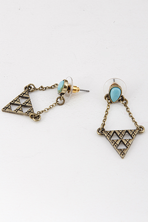 - * Aztec Style Teardrop Stone and Triangle Earrings 5JBC3 * 1.5" approx.