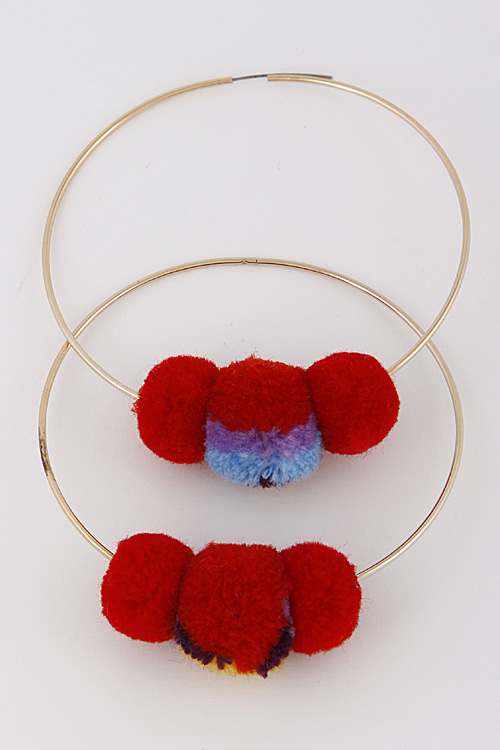 - * Pom Pom Hoop Earrings 7ECC3 * 2.8 X 3" approx.